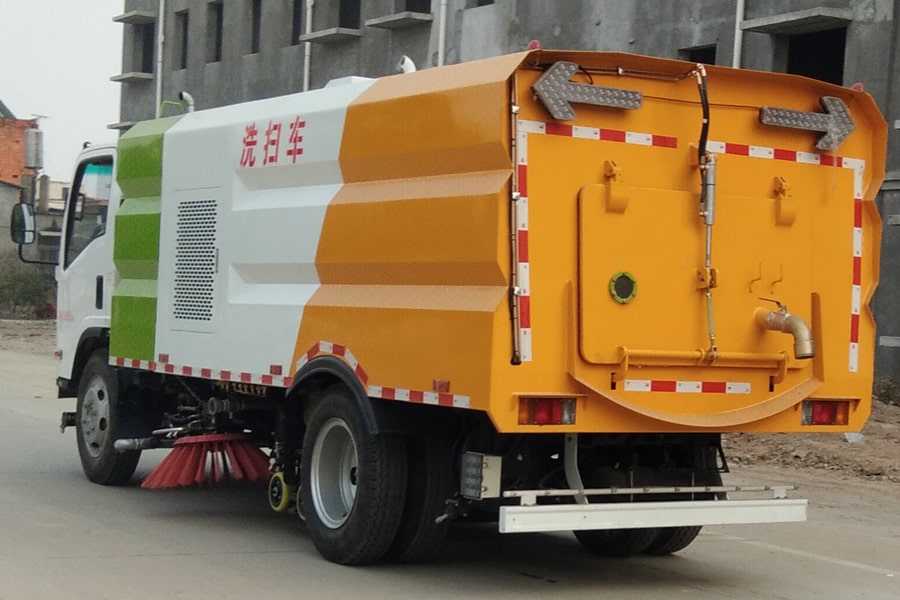 11、五十铃5吨多功能洗扫糖心vlog 的垃圾箱内带有自洁功能,在垃圾倾倒完成后可将箱内的残留垃圾冲洗干净,减轻环卫工人的负担。